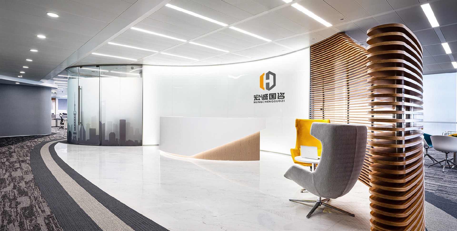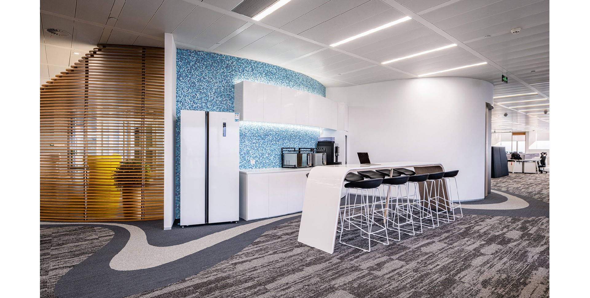 整體設(shè)計(jì)體現(xiàn)了我們對(duì)細(xì)節(jié)的極致關(guān)注,從地毯圖案到室內(nèi)各種搭配無(wú)一不精心策劃。通過色彩搭配和空間布局,創(chuàng)造出一個(gè)專業(yè)又舒適的辦公環(huán)境,提升員工和訪客的體驗(yàn)感。