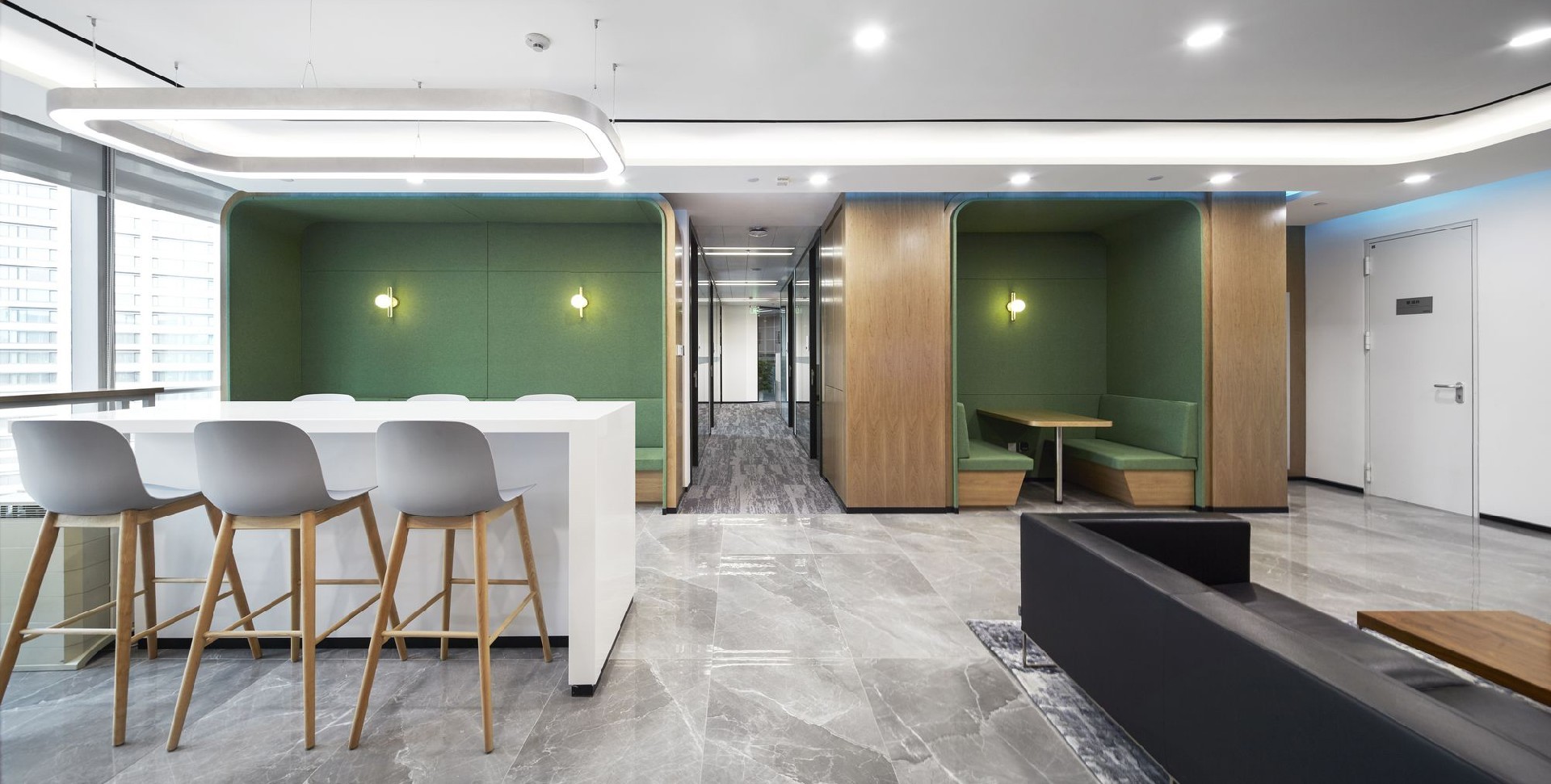 整體設(shè)計(jì)呈現(xiàn)出簡(jiǎn)潔而專業(yè)的現(xiàn)代風(fēng)格,體現(xiàn)了現(xiàn)代辦公環(huán)境的流行趨勢(shì)。以白色和木色為主,白色營(yíng)造明亮寬敞的氛圍,木色增添溫馨與專業(yè)感。綠色成為空間中的亮點(diǎn),提升視覺(jué)沖擊力。以實(shí)用為導(dǎo)向,注重空間的功能性和使用效率。